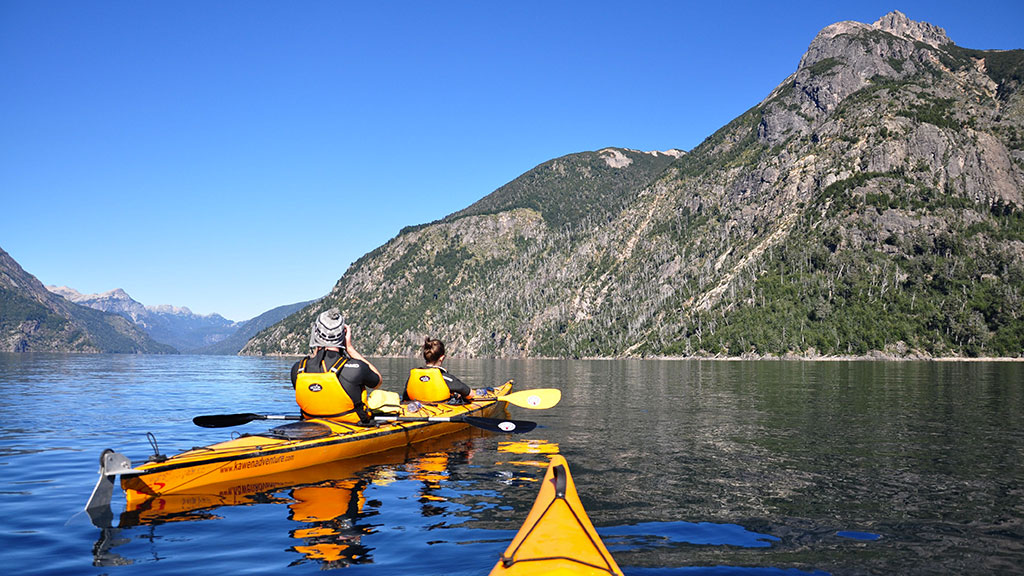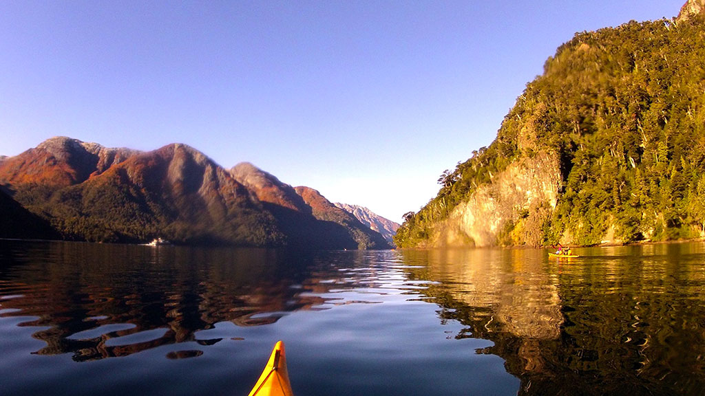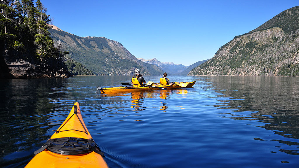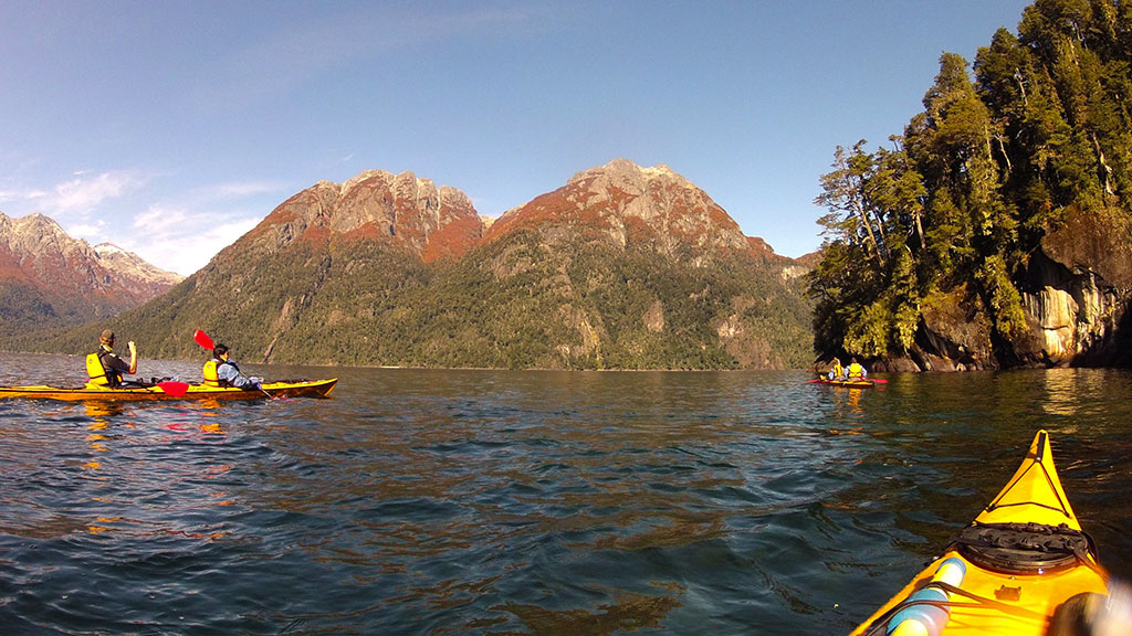 Day 1 – Mourning departure from your hotel, 45min. transfer to Bahía López. Before jumping on the kayaks we do an introduction of basic techniques and safety procedures on coastal kayaking. Then we start the expedition leaving from the protected waters of the bay and after 30 minutes of kayaking we enter in the Tristeza branch of Lake Nahuel Huapi. We continue kayaking among the high walls of Mount López and Mount Capilla. Stop for lunch at an isolated beach with wonderful views of the mountains. Then we continue to the end of the lake to do a 1,30 hour hiking to the waterfalls of Frey River. Back on the kayaks we continue to our destination. “Mate-tea” with pastries while setting-up the camping and time at leisure to explore. Night at FREE CAMPSITE.