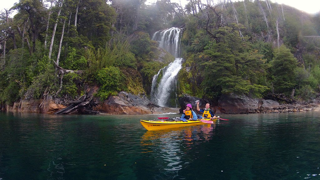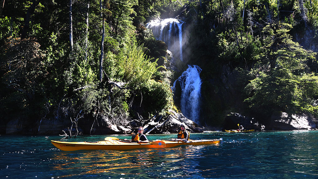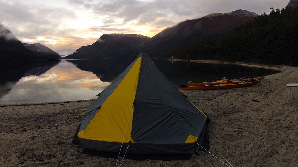 Day 2 – Early breakfast and preparation of the kayaks for a very long second day of paddling. Today we will kayak all Tristeza to enter then on Blest branch of Nahuel Huapi. We will have amazing views of mountains and waterfalls. Stop for lunch and after a relax moment we continue to our next camping in a remote beach. “Mate-tea” while setting-up the camp. Night at FREE CAMPSITE.
