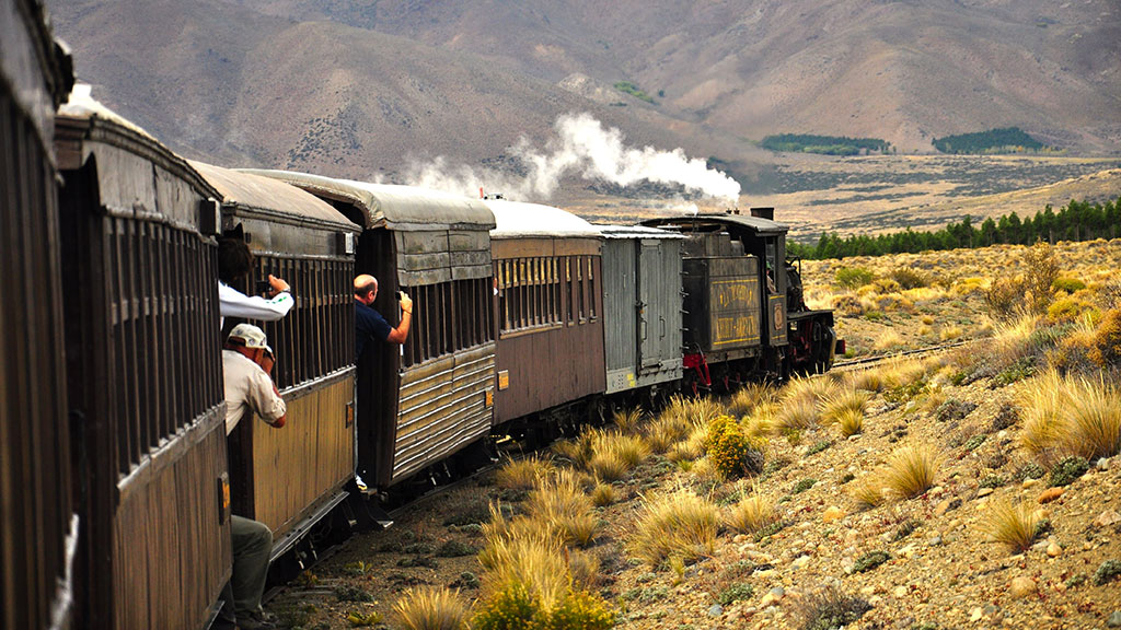 Option 2 (only possible if Saturday): Early departure to take the RUTA 40 south driving beside the Lakes Gutierrez, Mascardi and Guillelmo and passing through the famous town of El Bolson. Here we take the road to El Maiten. This town was originated besides the railway of “La Trochita”. We will visit the Train station and the garage where the necessary replacement pieces are handmade to keep this old steam train alive. At 2pm we will take the train historic ride. Our bus will wait for us on a rail cross to continue to our next destination, Esquel.