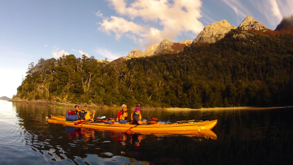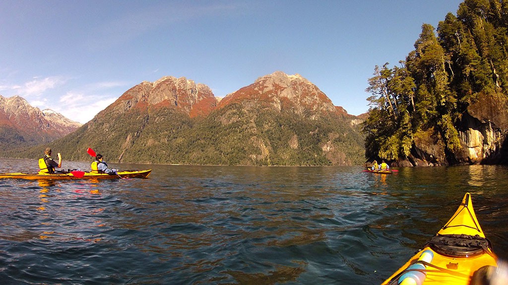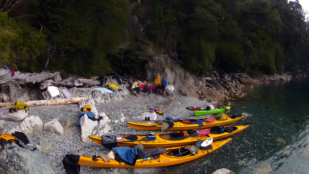 Día 1: Traslado de 45’ desde el hotel hasta Bahía López. Luego de una introducción a la técnica básica del kayak y las maniobras de rescate comenzamos la travesía. Tras 30 minutos de remo, dejamos la protección de Bahía López para ingresar al Brazo Tristeza y remamos hasta una de sus cascadas. Luego continuamos bordeando la costa norte del Tristeza para salir a “la coctelera” e ingresar en el Brazo Blest. Parada para almuerzo y continuamos hasta nuestro campamento en una remota playa del Lago. Mate con facturas durante el armado del campamento y tiempo libre. Cena y noche en campamento agreste.